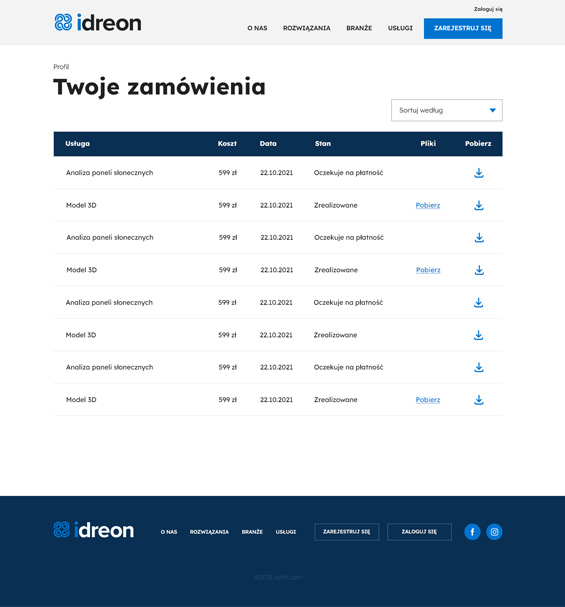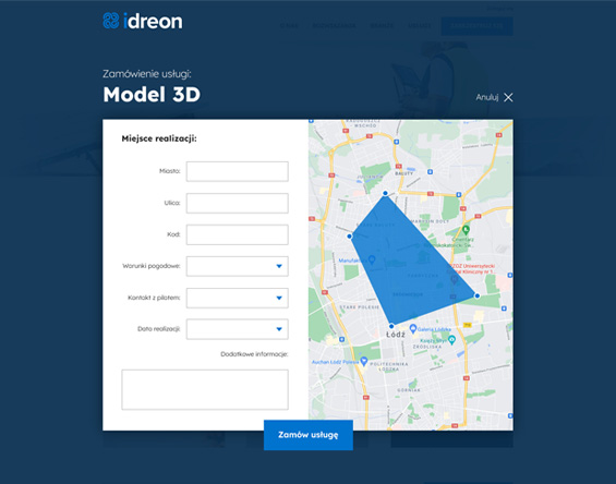 Projekty Idreon Projekt graficzny strony internetowej, ułatwiającej skorzystanie z usług z wykorzystaniem dronów. projekt strony