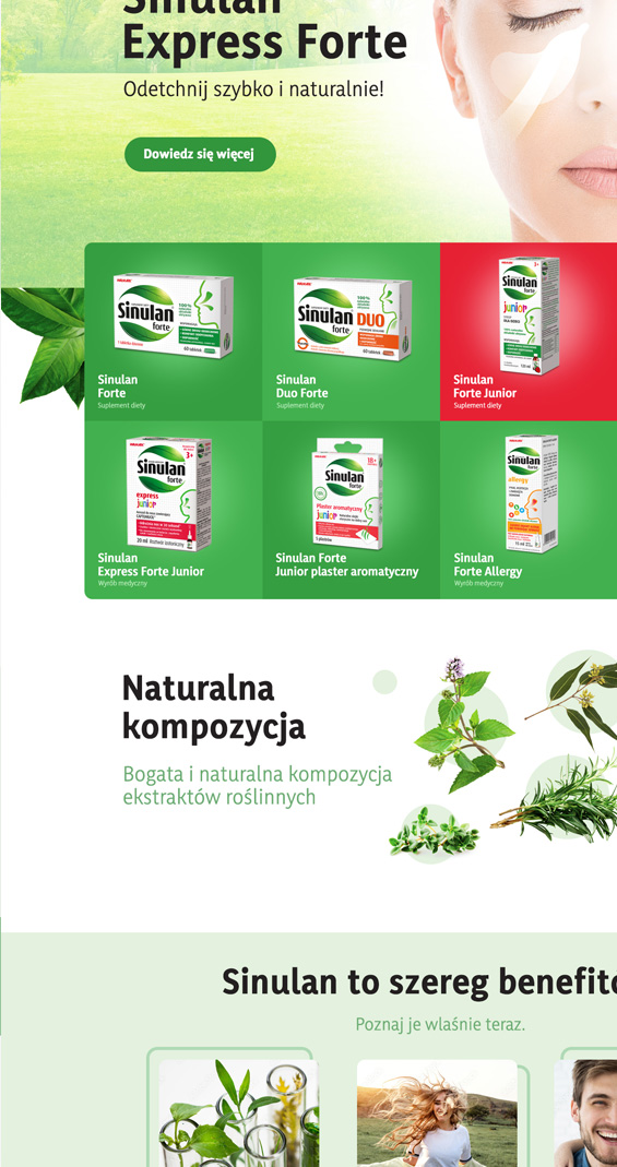 Projekt graficzny strony internetowej (landingpage) produktów wspomagających pracę górnych dróg oddechowych.