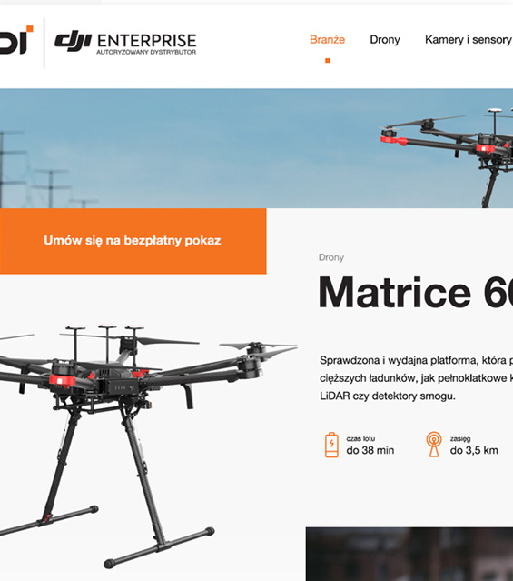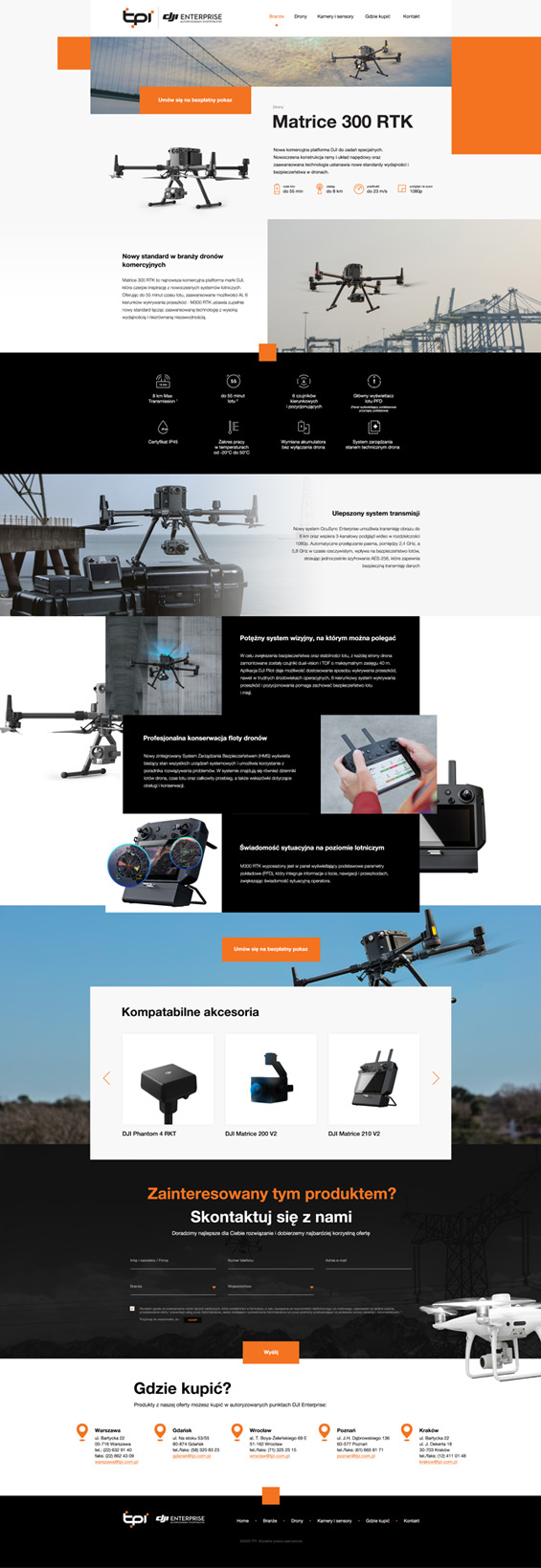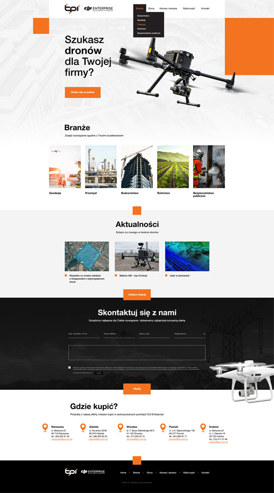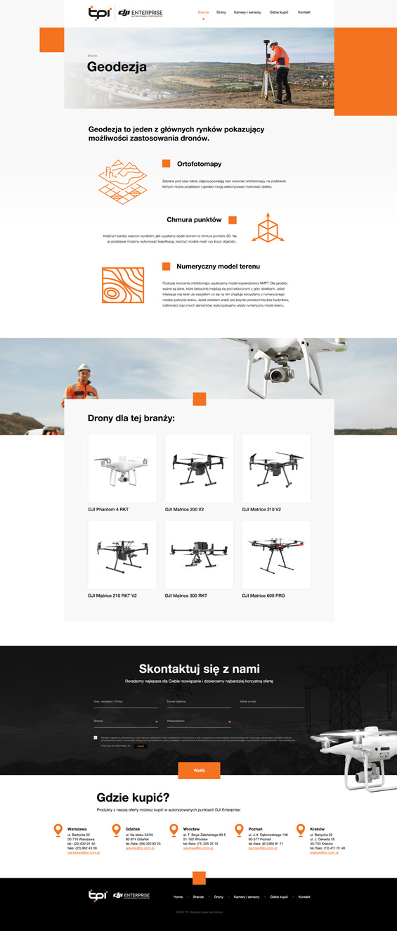 Projekty TPI Projekt graficzny strony internetowej dystrybutora produktów marki DJI - dronów. projekt strony