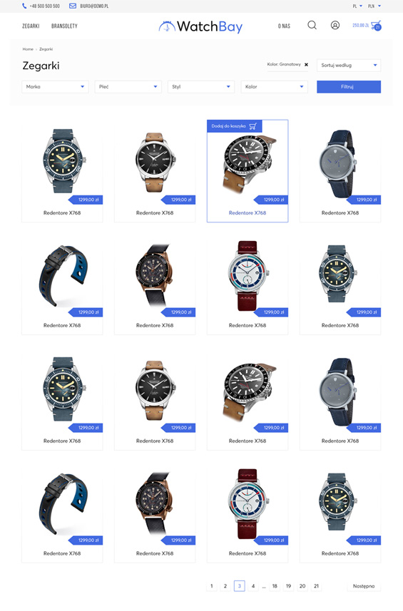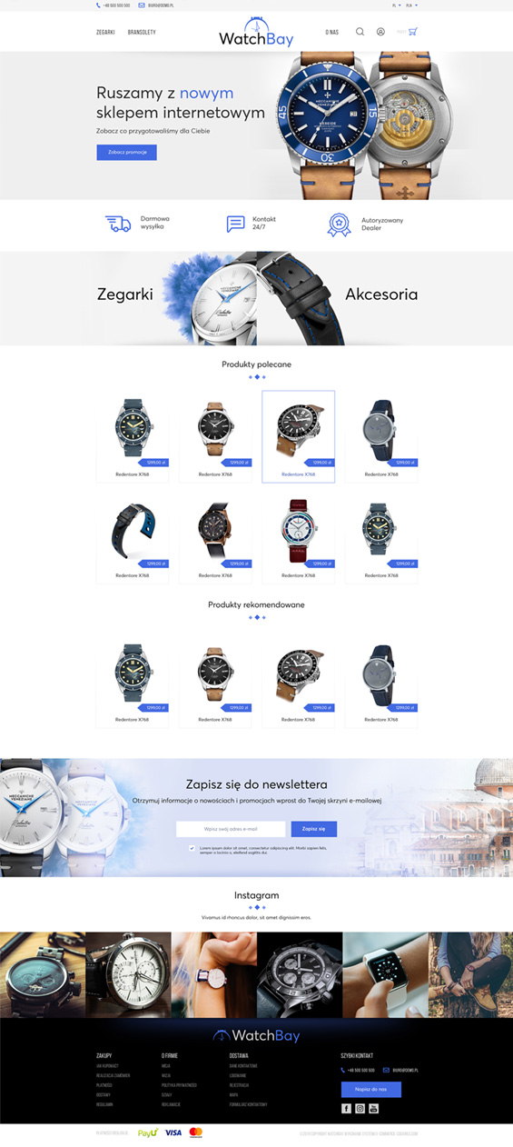Projekty Watchbay Projekt graficzny sklepu internetowego z zegarkami męskimi i damskimi, oraz akcesoriami. projekt sklepu