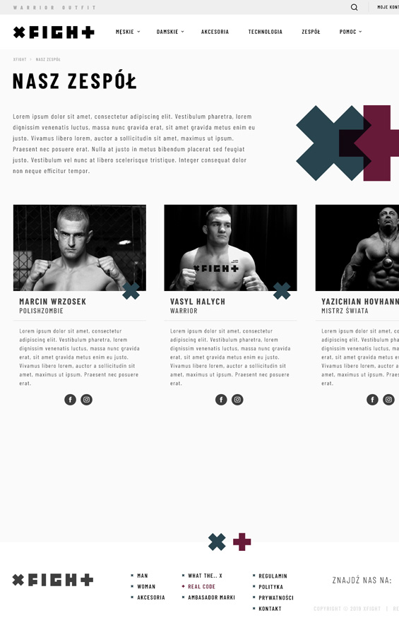 Projekty Xfight Projekt graficzny sklepu internetowego producenta odzieży dla sportowców trenujących sporty walki. projekt sklepu